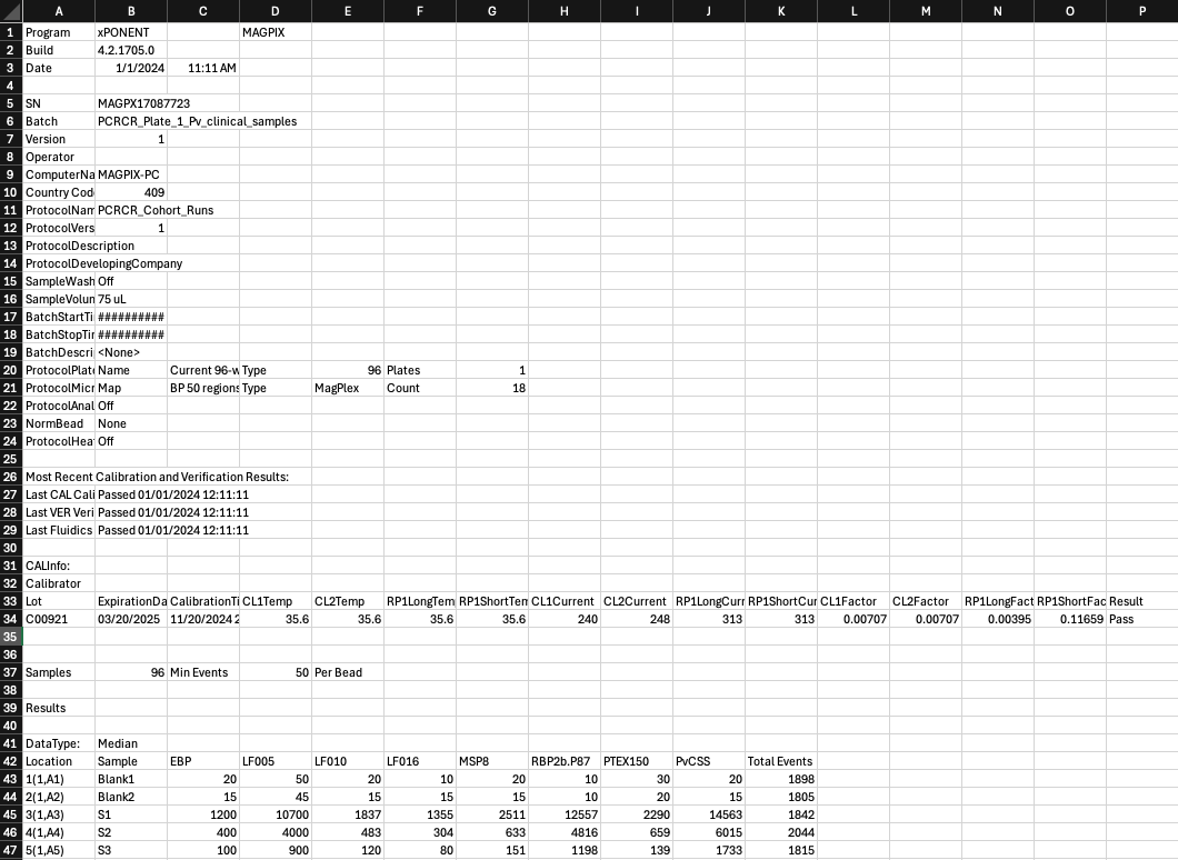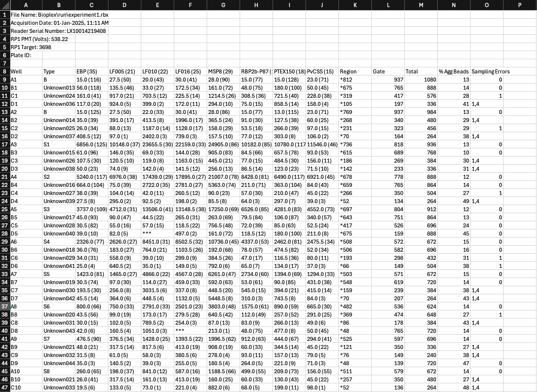 Isolate names will tend to be written as ‘X1’, ‘X2’, ‘X3’… and saved as an .xlsx file. Specifics on Bio-Plex machines will be added shortly.